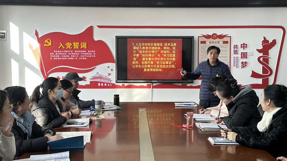 依据《基础教育课程改革纲要》要求,钢城小学于元月8日下午组织全体数学教师开展“构建高效教学体系的路径探索”专题教研活动。本次活动由张俊刚主任主讲,聚焦**“三维目标融合设计”** 核心要点,提出将知识技能、思维方法与情感态度有机结合的教学思路。